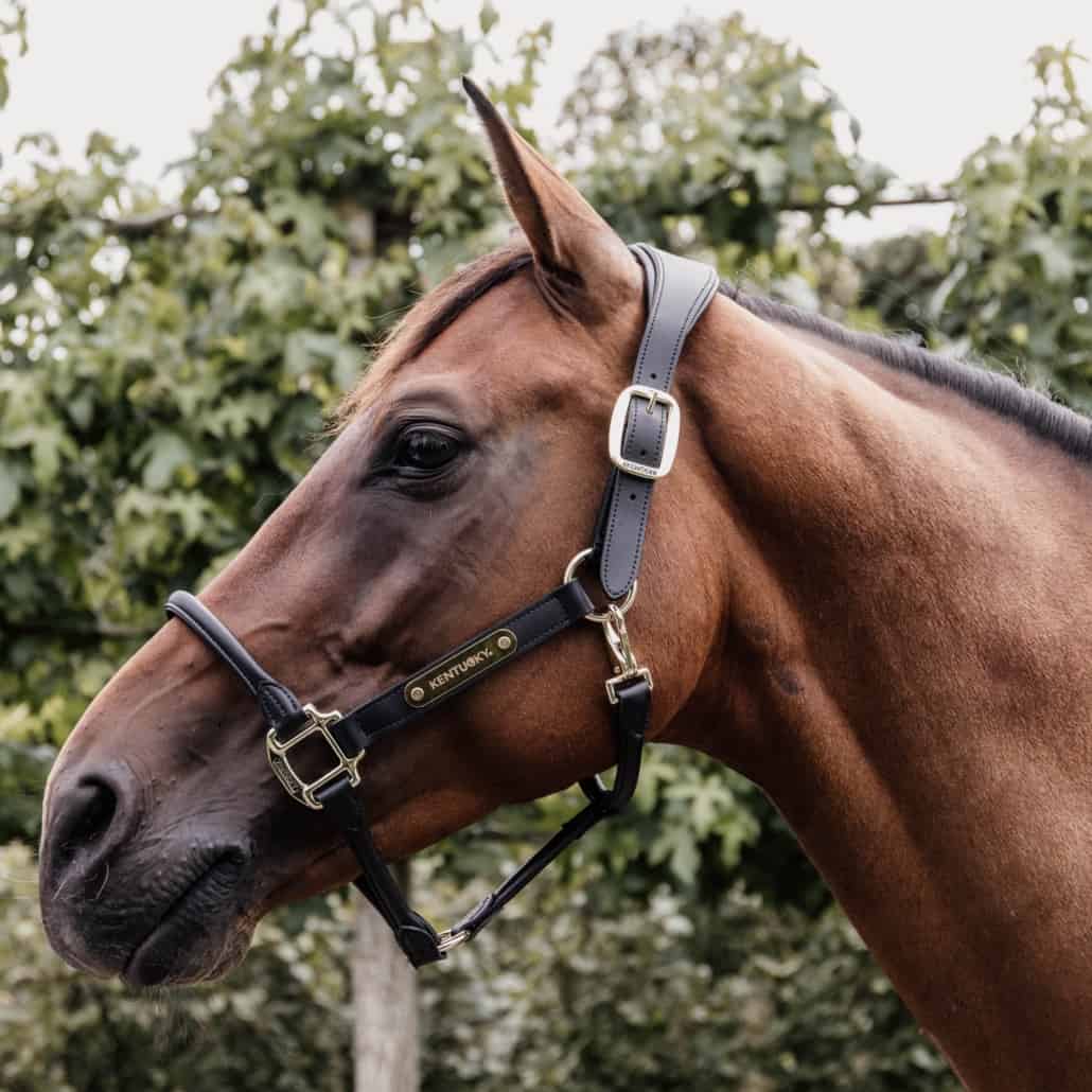 Le licol en cuir Anatomic est fabriqué en similicuir de haute qualité (100% respectueux des animaux). Ce cuir synthétique n’absorbe pas l’eau et la saleté, ne se casse pas et ne change pas de couleur. Il est plus flexible que le cuir véritable et donc plus facile à manipuler. Comme le licol n’absorbe pas l’eau, il convient très bien pour être utilisé lorsque ton cheval est mouillé ou qu’il doit être lavé. Le licol en cuir Anatomic a une forme spéciale pour un meilleur ajustement au niveau des oreilles. Cela permet également de mieux répartir la pression du licol. Grâce à la muserolle ronde et au design chic, le licol est très élégant. La taille peut être réglée au menton et sur le côté gauche. Sur le côté se trouve un emblème Kentucky doré. Tu peux également utiliser cet emblème à l’envers pour une gravure personnelle. La fermeture du licol est dorée et peut donc être parfaitement combinée avec les étrennes de démonstration Kentucky Horsewear.